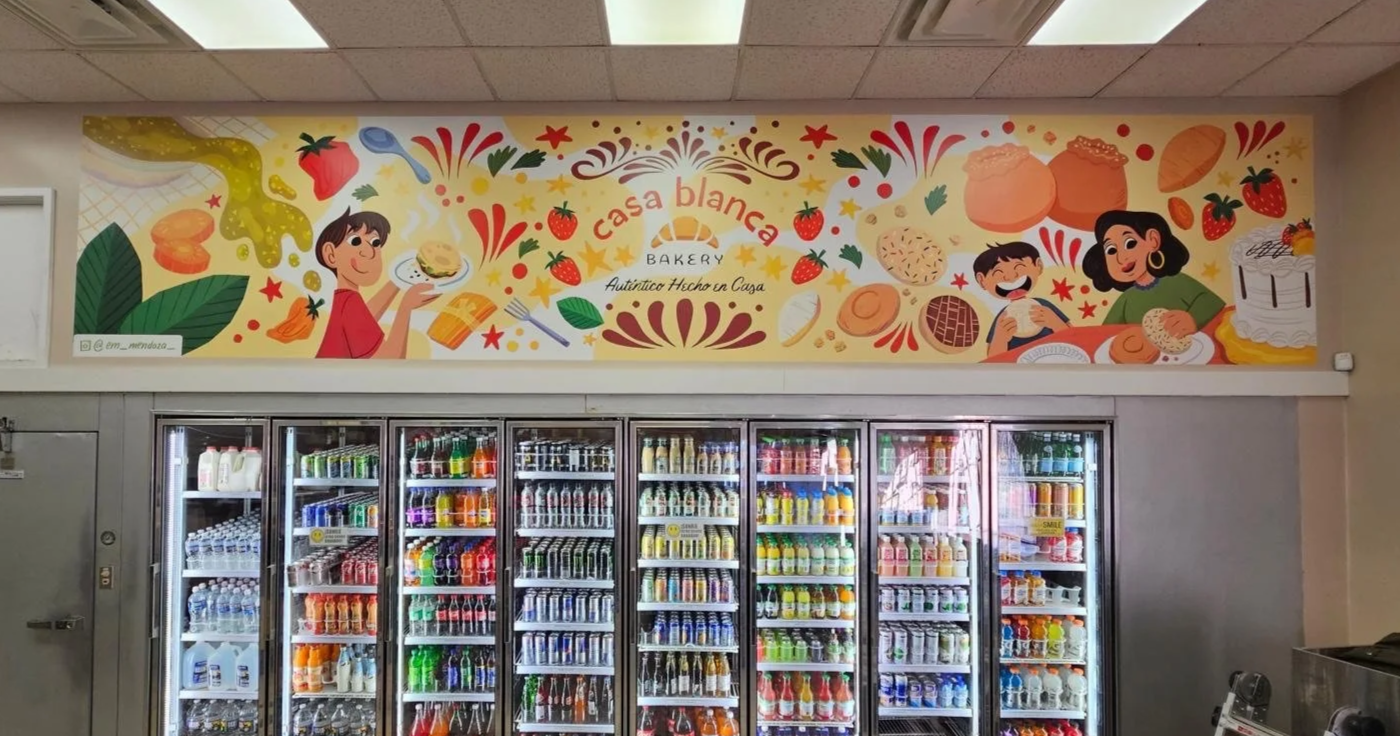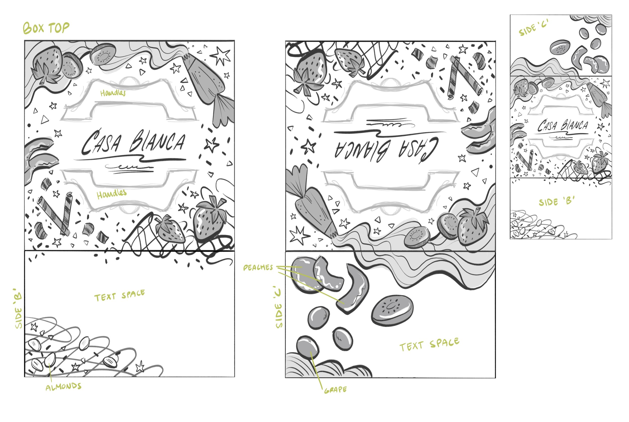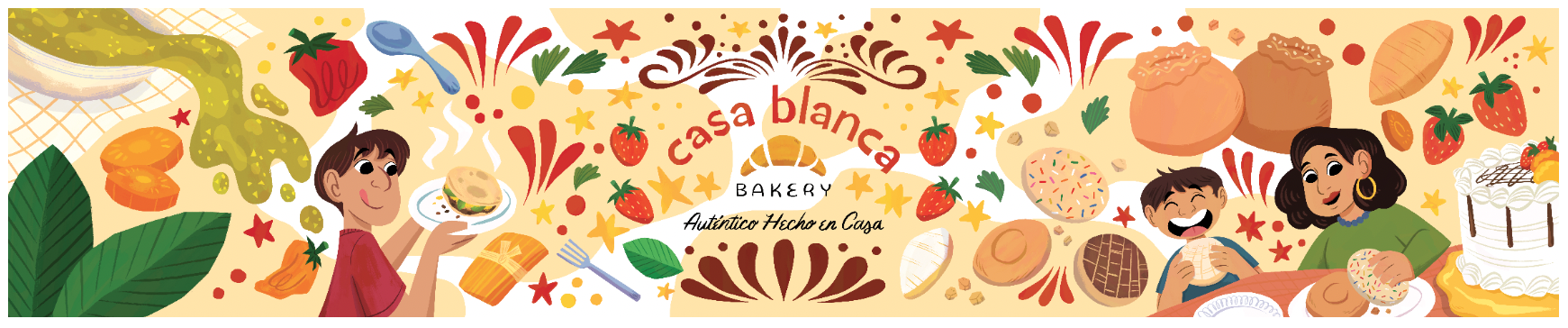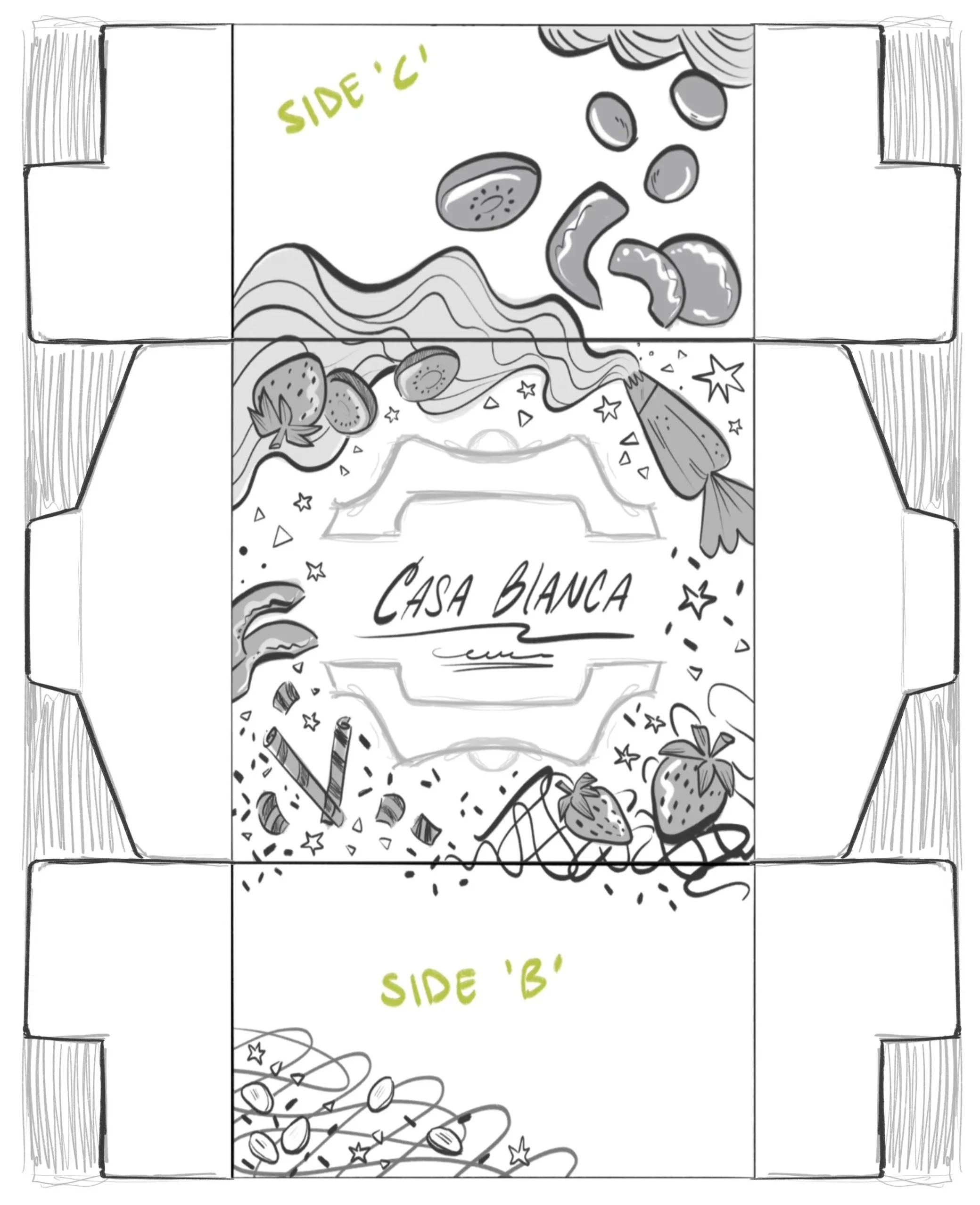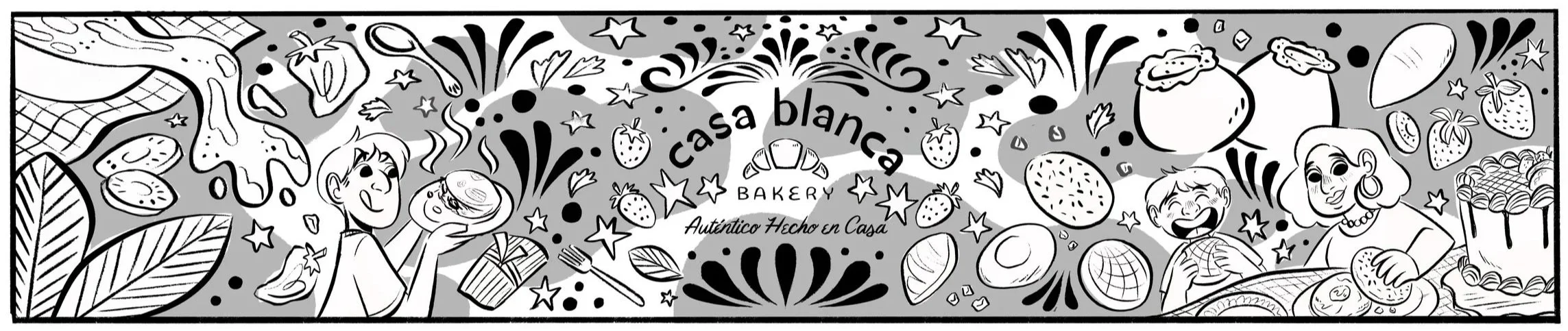 Casa Blanca Bakery Mural & BrandingIllustration work and mural for Casa Blanca Bakery store front based in Maryland. Mural Sketches & Final Illustration work Cake box sketches